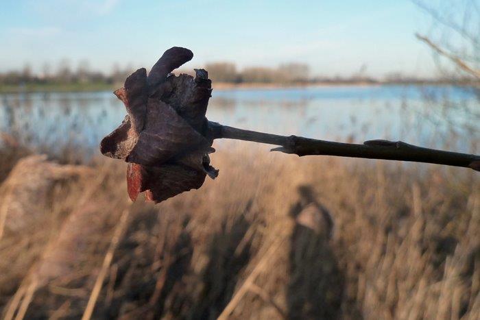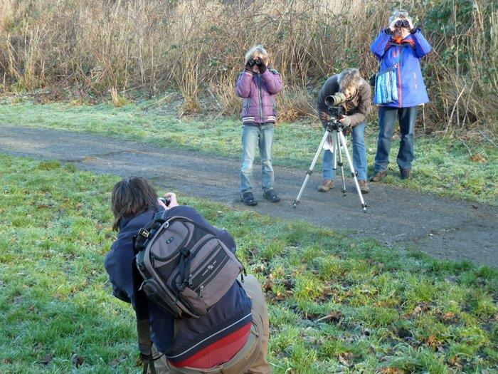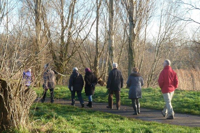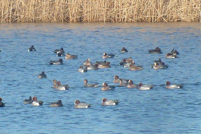 Op zondag 12 januari 2014 wandelden we met bijna 20 mensen rond de Klinkenbergerplas. Als er in de schaduw niet nog een paar dunne plakjes ijs op de plasjes op het pad hadden gelegen, zou je niet weten dat het winter was. Een prachtige blauwe lucht en een temperatuur die in de loop van de ochtend opliep naar een graad of acht. Rianne Meester vertelde iets over het onstaan van de plassen en Lex en Marijke Burgel lieten ons de vogels zien en horen. Er waren niet echt veel soorten maar de paar duizend Smienten op de plassen zijn best een spectaculair gezicht. Zeker als je deze mooie eendjes en nog wat andere soorten van dichtbij door de telescoop kunt bekijken. Een bijzondere waarneming, die sommigen tegen het einde van de wandeling deden, was de Rosse stekelstaart. Dat is een eendensoort die ontsnapt is uit gevangenschap en zich langzaamaan verspreidt. Verder wezen de gidsen ons op de hazelaar, die in deze eerste weken van het jaar al in bloei staat en gallen zoals de wilgenroosjesgal.