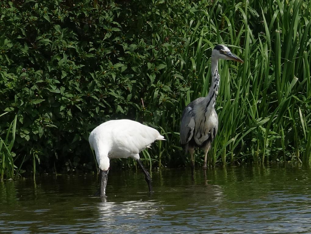 Deze foto van W.P. Schaesberg kreeg de derde prijs in augustus 2016. Blauwe reiger en Lepelaar aan het werk